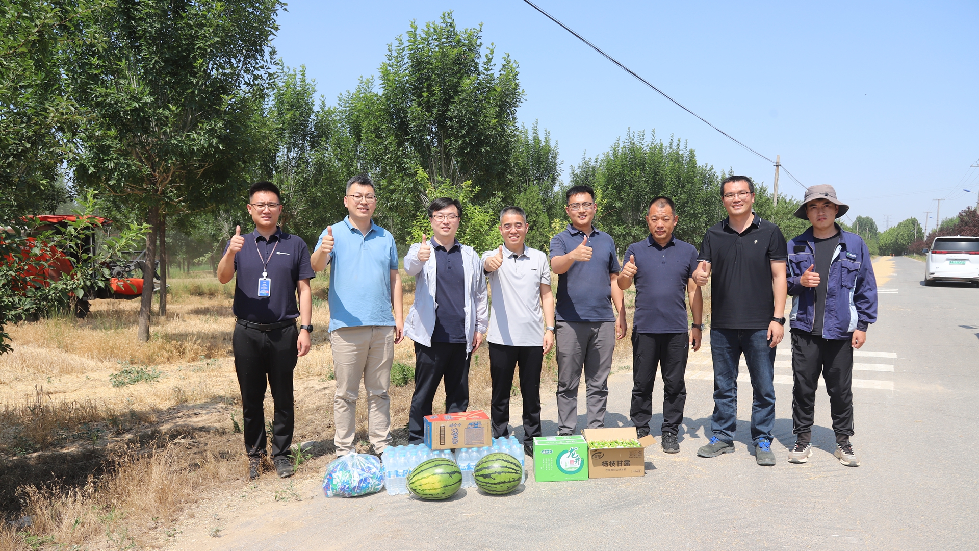 麥收期間(jiān),公司高(gāo)管團隊陸續前往南(nán)北(běi)基地(dì)多(duō)個(gè)作(zuò)業(yè)片區(q≥ū),為(wèi)奮戰在高(gāo)溫下(xià)的(de)一(yī)線員(yuán)工(gōng)送去(✘qù)飲料、雪(xuě)糕、水(shuǐ)果等防暑降溫物(wù)資包,叮囑各片區(qū)負責人(rén)≠務必落實防暑降溫措施,将安全生(shēng)産放(fàng)在首位,在确保人(rén)身(shēn)安全的(de​)前提下(xià)盡快(kuài)完成麥收任務。