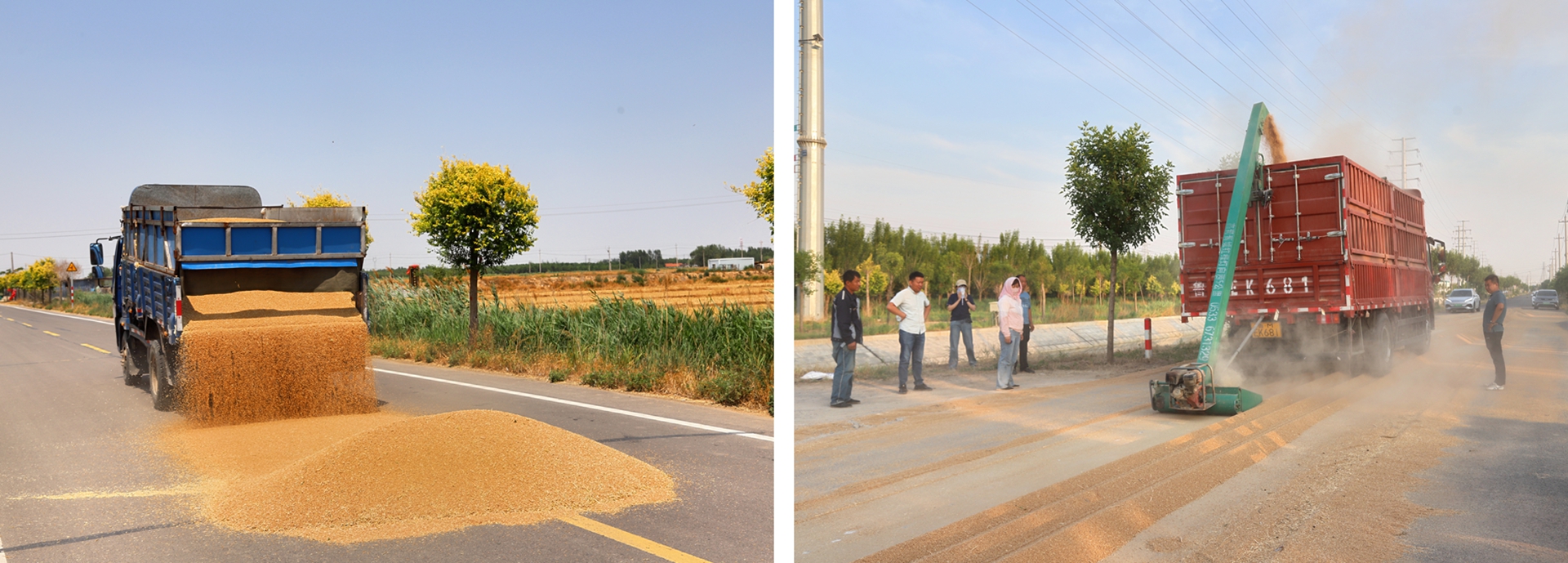 田間(jiān),收割機(jī)高(gāo)效作(zuò)業(yè),将麥穗切割、脫粒、清選後,麥粒通(tōng)過卸糧筒裝入運糧車(chē)。收割、轉運、晾曬、質檢、入​倉各環節緊密銜接,高(gāo)效有(yǒu)序。